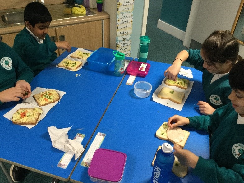 The year 3 children learned about how sandwiches are an important part of British culture and take inspiration from different cultures. The children learned about healthy eating and chose ingredients and fillings based on what they learned. They were able to explain why their filings were healthy.