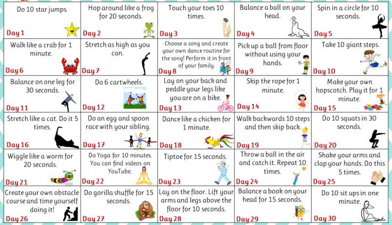 Why not try this fitness challenge. Try complete as many challenges as you can. Remember to be resilient if you are finding it tricky.